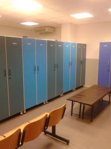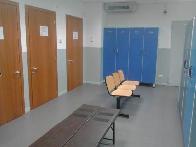 Magazzino attrezzature, spogliatoi, servizi igienici completi di docce, lavanderia ed autorimessa.